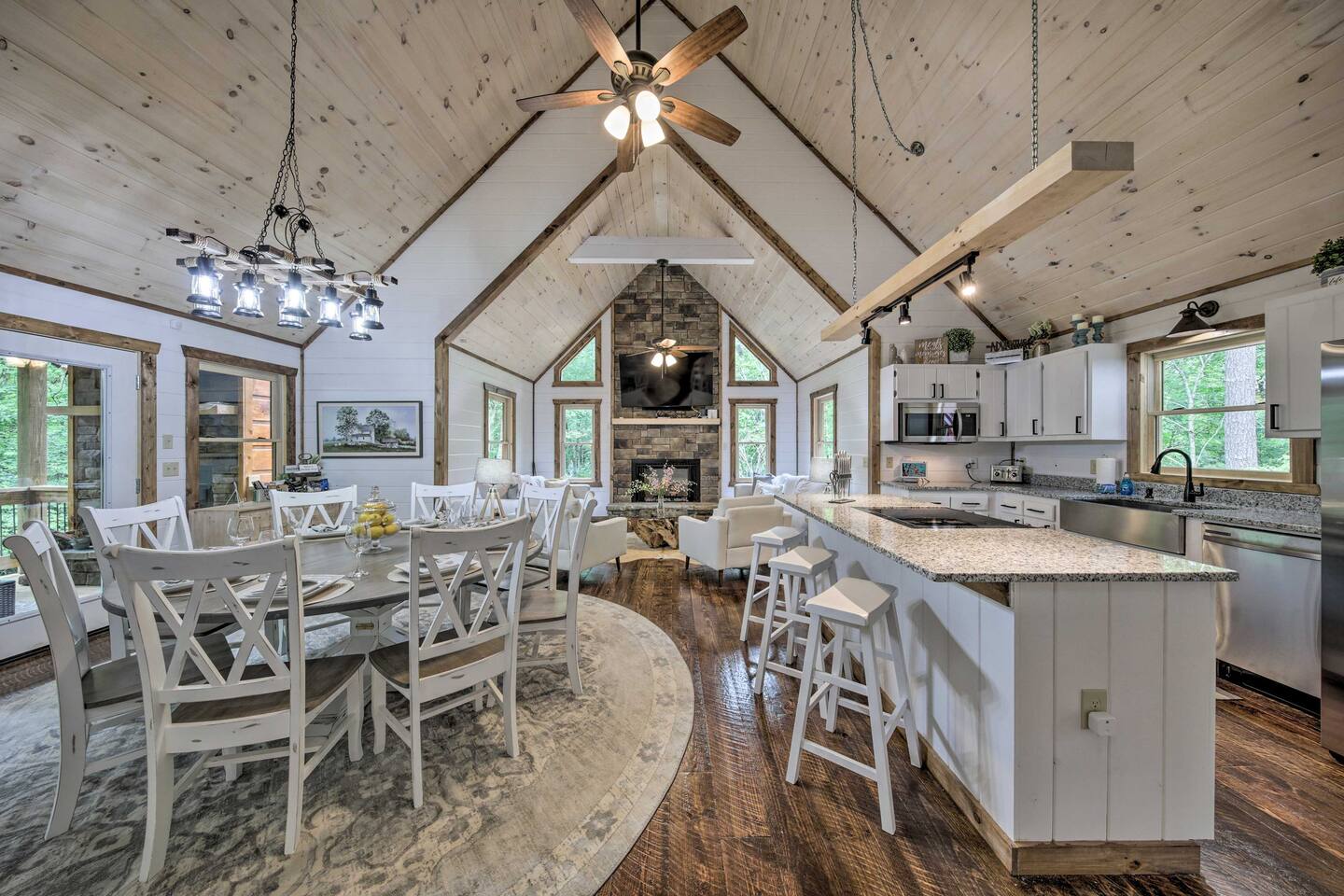 Treat the family to a luxurious getaway in Blue Ridge. Boasting a brand- new putting green, basketball court, and plenty of indoor and outdoor living space, this 3-bedroom, 3.5-bathroom vacation rental makes for a relaxing trip. When you’re not streaming your favorites on the deck or soaking in the hot tub, be sure to take advantage of the natural beauty of the Georgia wilderness that surrounds you! There are plenty of outdoor activities for the whole family to help keep everyone entertained.